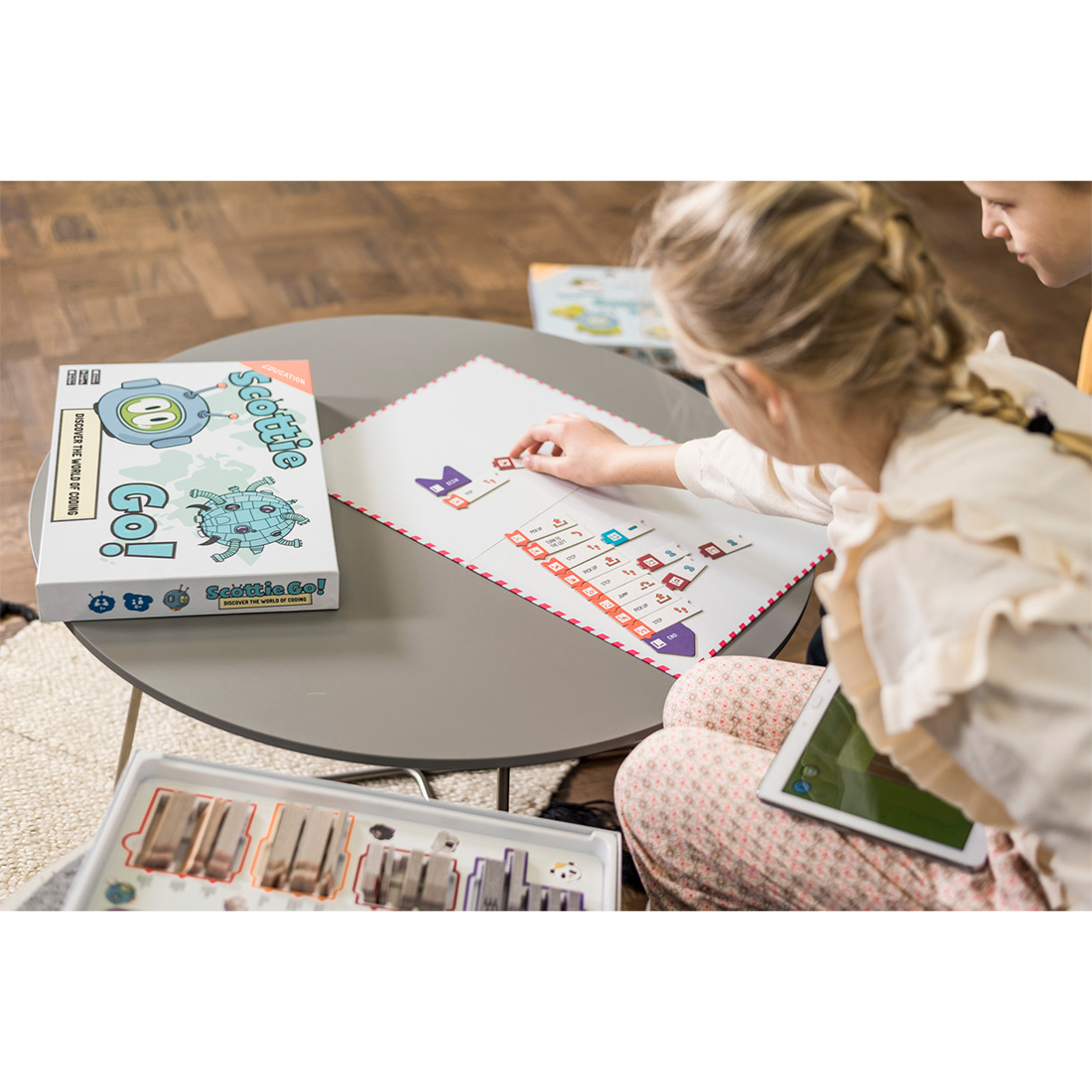 Basic innehåller ett spelbräde samt kodningsbrickor så att du kan sätta ihop de första 24 uppdragen som finns i Scottie Go EDU-app. Genom att använda Action Cards kan eleverna modifiera uppdrag eller utforma eget anpassade uppdrag utan att behöva använda en mobil enhet.