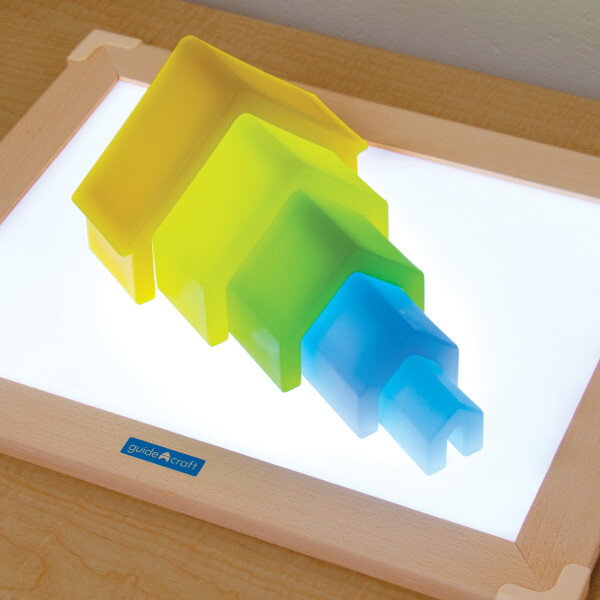 5 st. Med möjlighet till olika slags lek både inomhus och utomhus. Pentagonformen uppmuntrar till att experimentera med relationen mellan paralleller och lodräta linjer. Färgerna blir extra vackra på ett ljusbord. De enkla öppna husen öppnar upp för sagolek där allt kan hända. Inspirationskort medföljer med lekidéer, termer och vackra bilder. Mått på det största huset: L17xB7xH13,5 cm. Av PP-plast. Från 2 år.