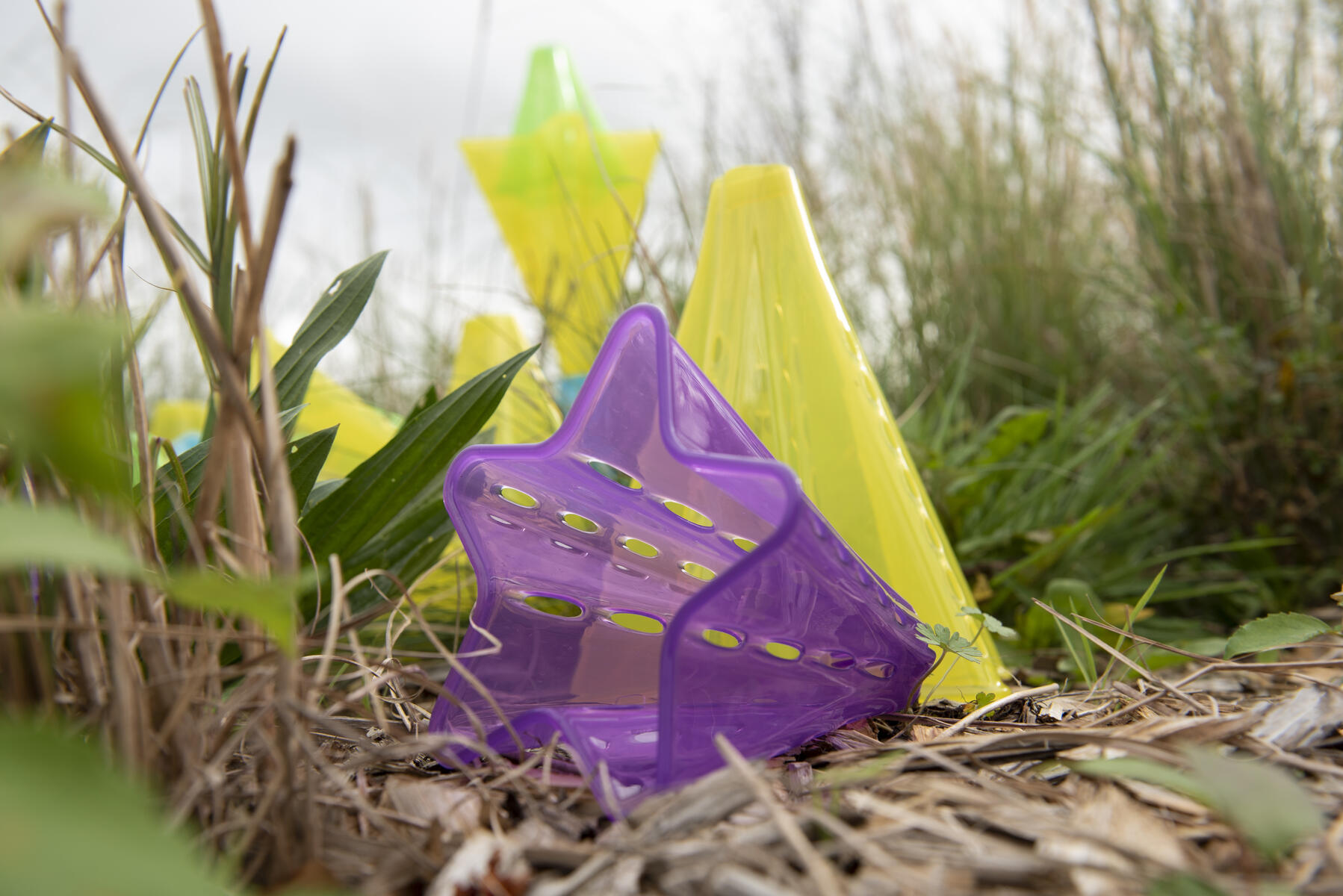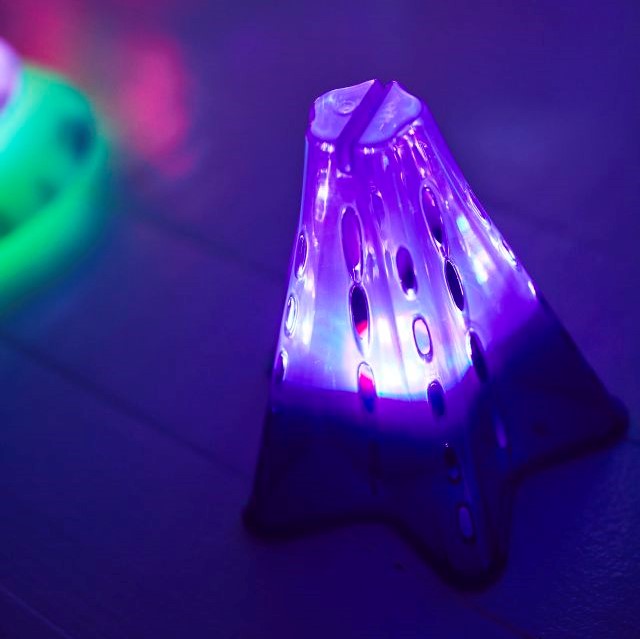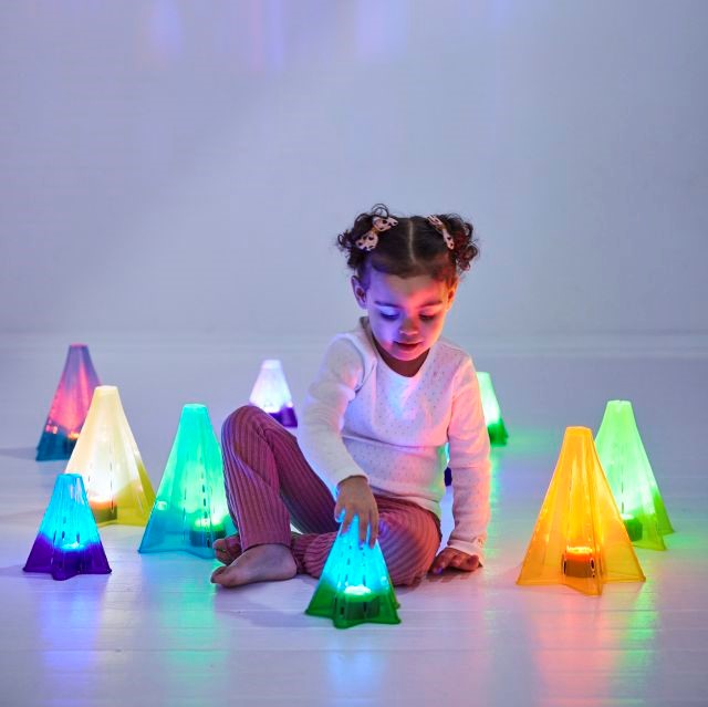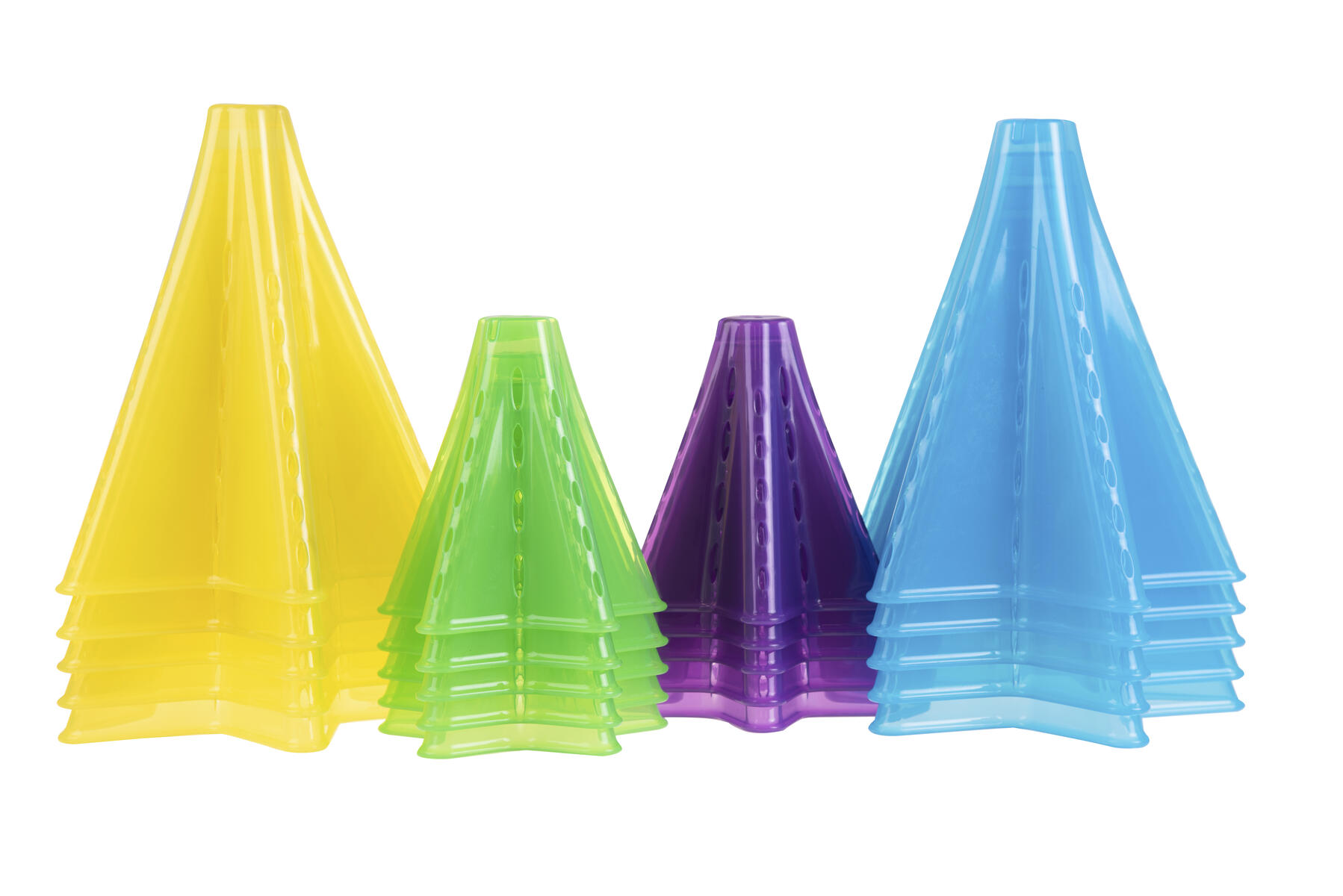 Koner i olika transparenta färger. Prova att lysa igenom med lampor och se hur skuggorna ser ut, eller ta med dem ut och använd i sand eller vatten.