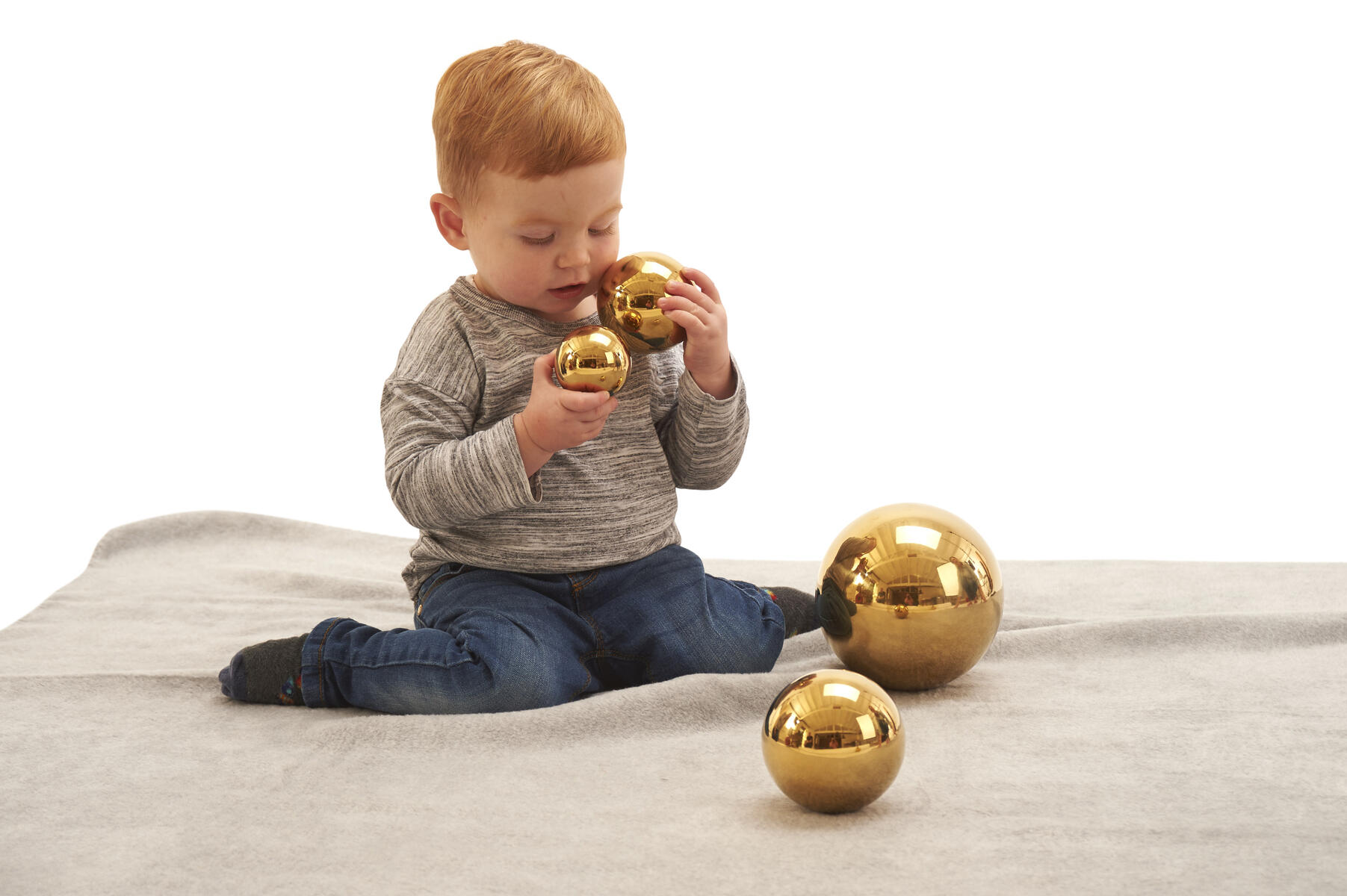 Fyra fascinerande klot i fyra storlekar (6,8,10,15 cm). Gjorda av rostfritt stål med en reflekterande yta som ger en spännande spegelbild av världen. Från 0 år.