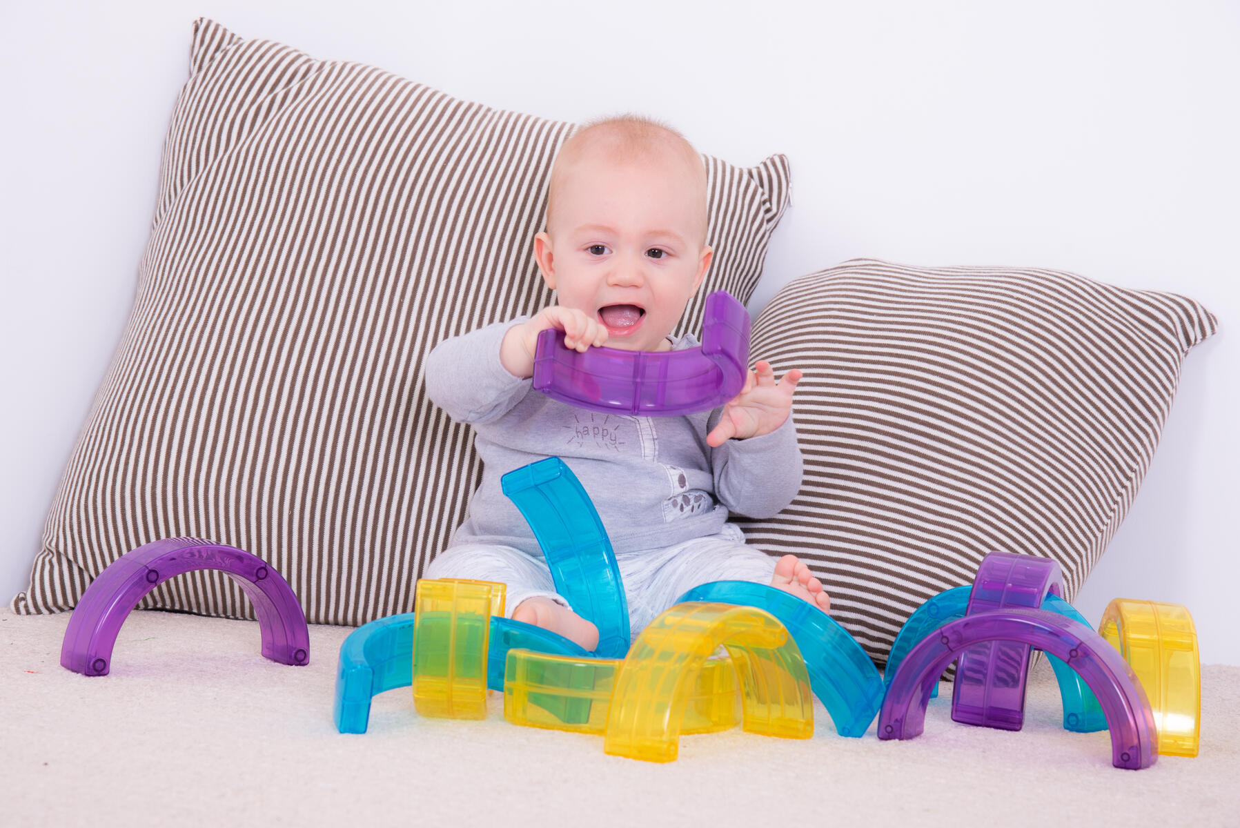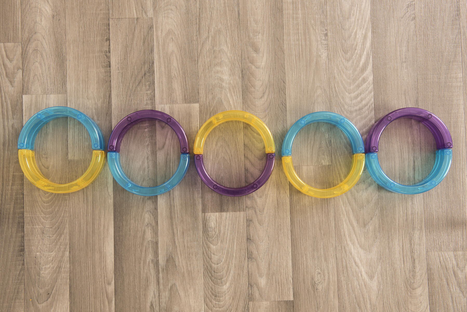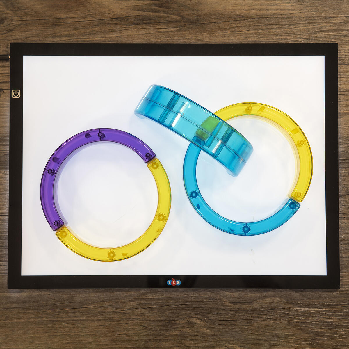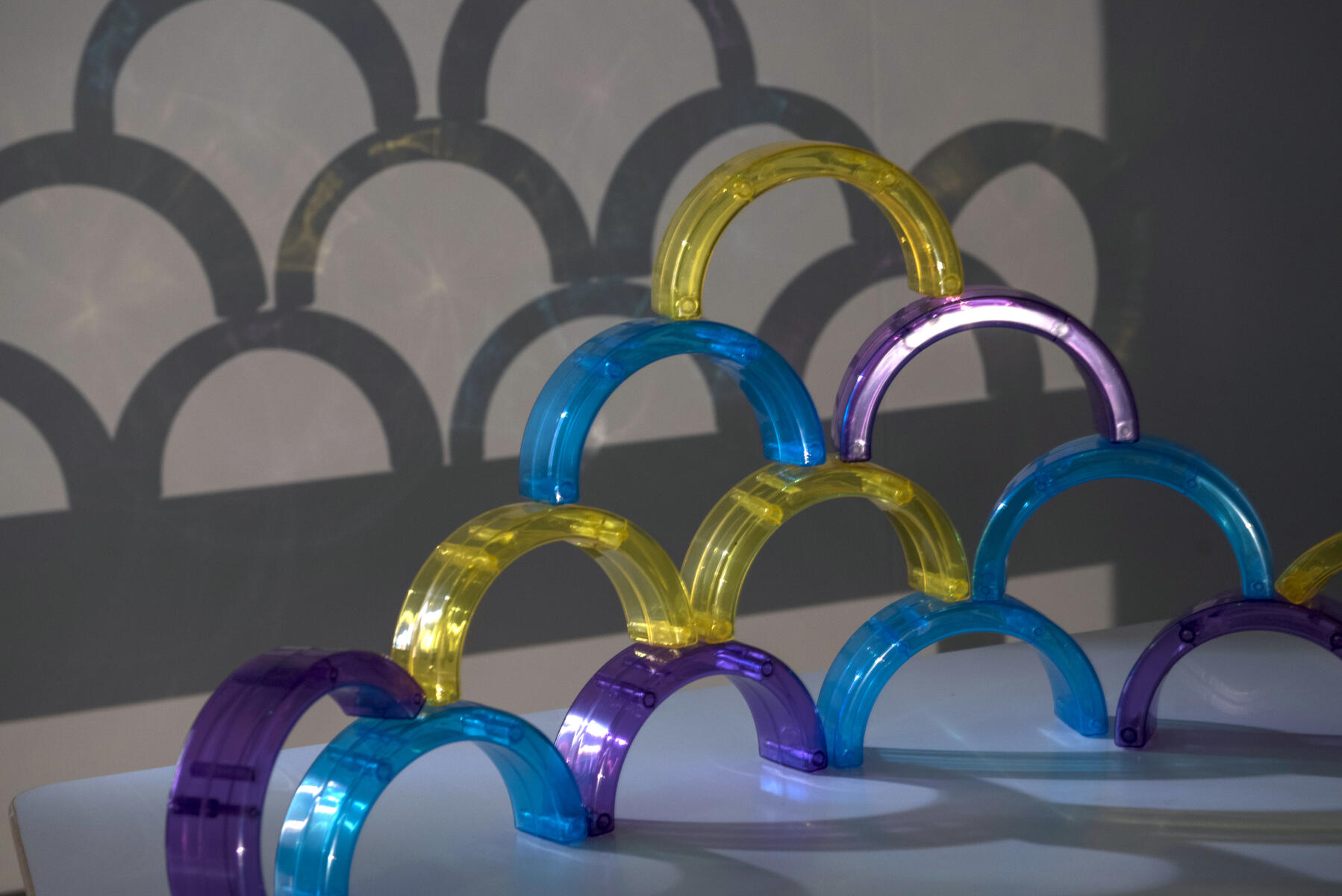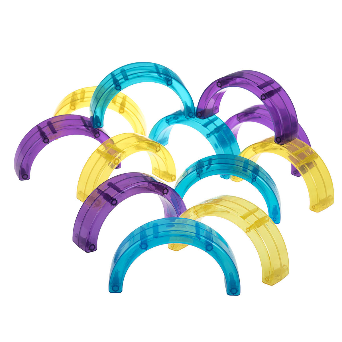 Transparenta färgade bågar som kan användas att bygga, balansera, göra mönster med. Lägg på ljusbord eller använd med ficklampor eller projektor för att lysa igenom.
