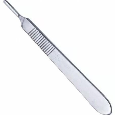 Skalpell med möjlighet att byta ut bladen. Av rostfritt stål.