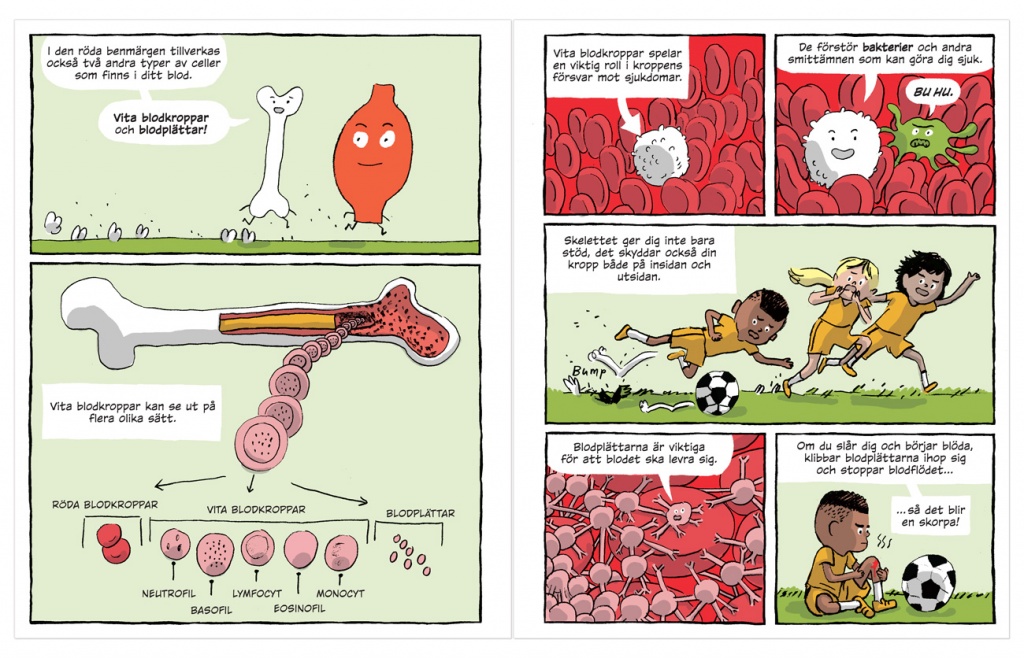 Naturens byggstenar är en ny bokserie med tydliga illustrationer ritade i serieform. De färgglada bilderna gör det roligt att lära sig om hur kroppen är byggd och hur den fungerar. Böckernas enkla och humoristiska språk stimulerar läslusten och gör varje sida till en spännande resa bland celler, muskler och olika kroppsdelar.