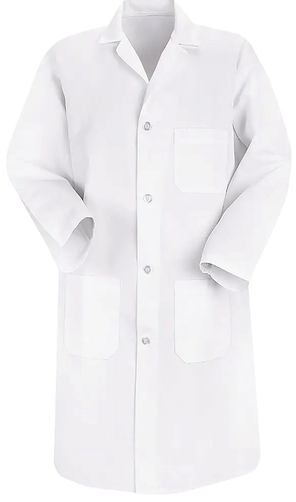 Vit skyddsrock med fickor av 65 % Polyester – 35 % Cotton.