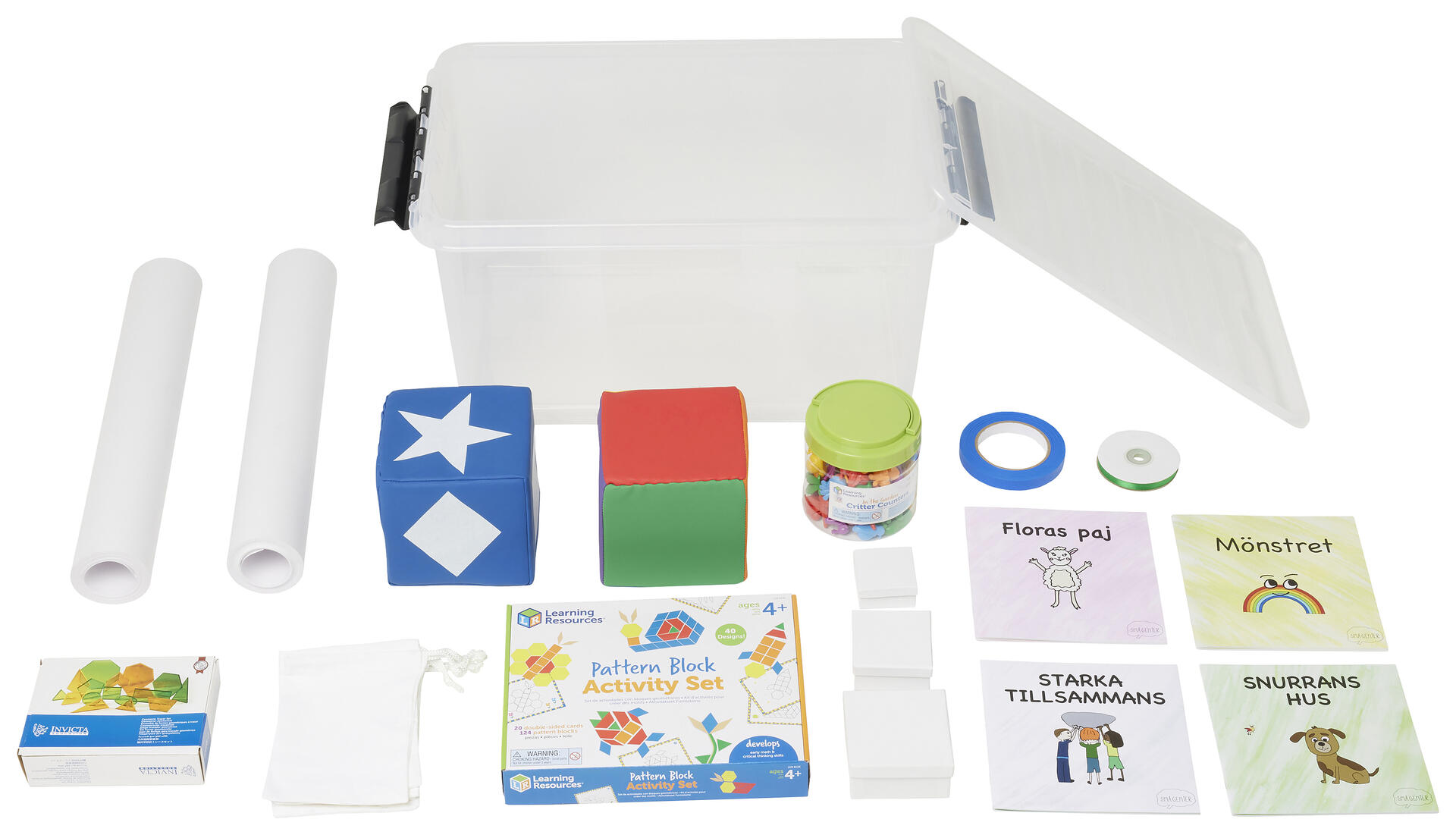 Matematikpaketet är baserat på fyra pedagogiska böcker om matematik. Alla böcker innehåller en underhållande saga, frågor på slutet för att diskutera bokens innehåll tillsammans med barngruppen och sex matematiska aktiviteter för barnen att genomföra inom bokens fokusområde. Ingående böcker: Mönstret (hur matematiska mönster är uppbyggda), Snurrans hus (begreppet mätning på olika sätt), Starka tillsammans (begreppet vikt och problemlösning) samt Floras paj (lägesord och hur man kan arbeta med dem). I paketet ingår även material kopplade till övningarna i respektive bok.
