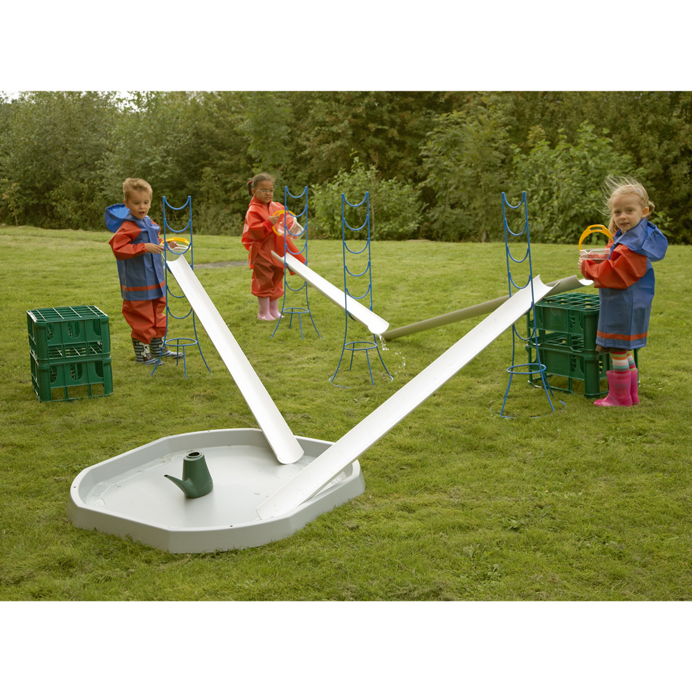 Skapa en spännande plats på utegården och låt barnen samarbeta med vatten som tema! Att se vatten flöda fram i bäckar och andra vattendrag kan fånga barns uppmärksamhet i evigheter! Skapa en spännande plats på utegården och låt barnen träna samarbete och problemlösning.
