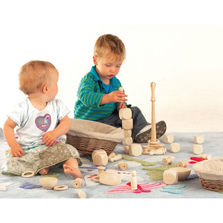 Stor materialsats med figurer i naturträ.