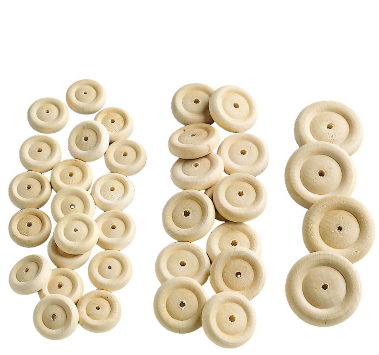 Trähjul 25mm. 100 st/fp. Av olackerat trä. Håldiameter 3 mm.
