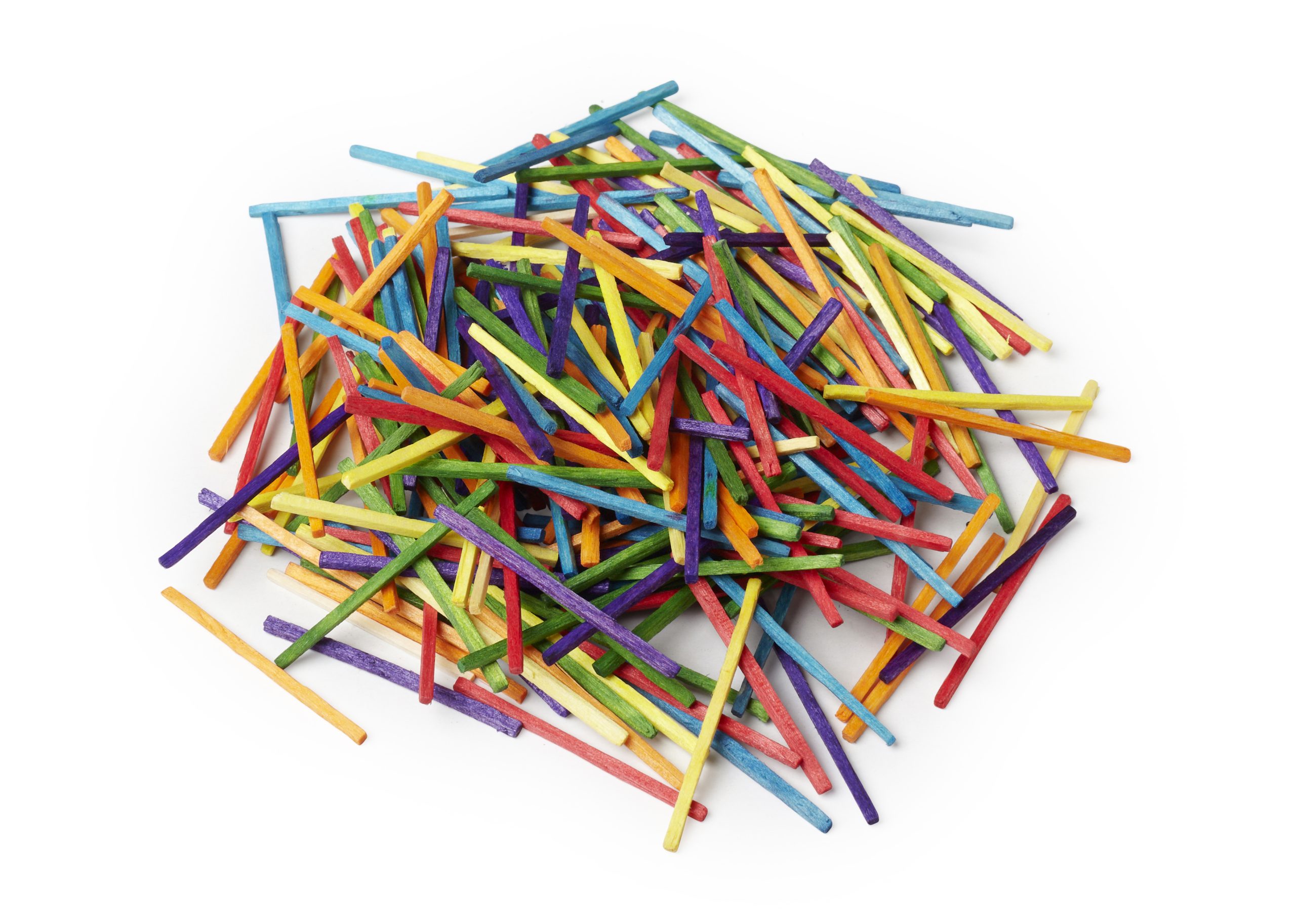 Färgade trästickor längd 50mm, c:a 5 000 st/fp.