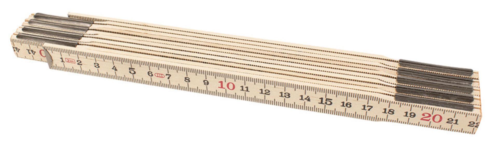 Klassisk tumstock med meterskala. 2 m. Av trä.