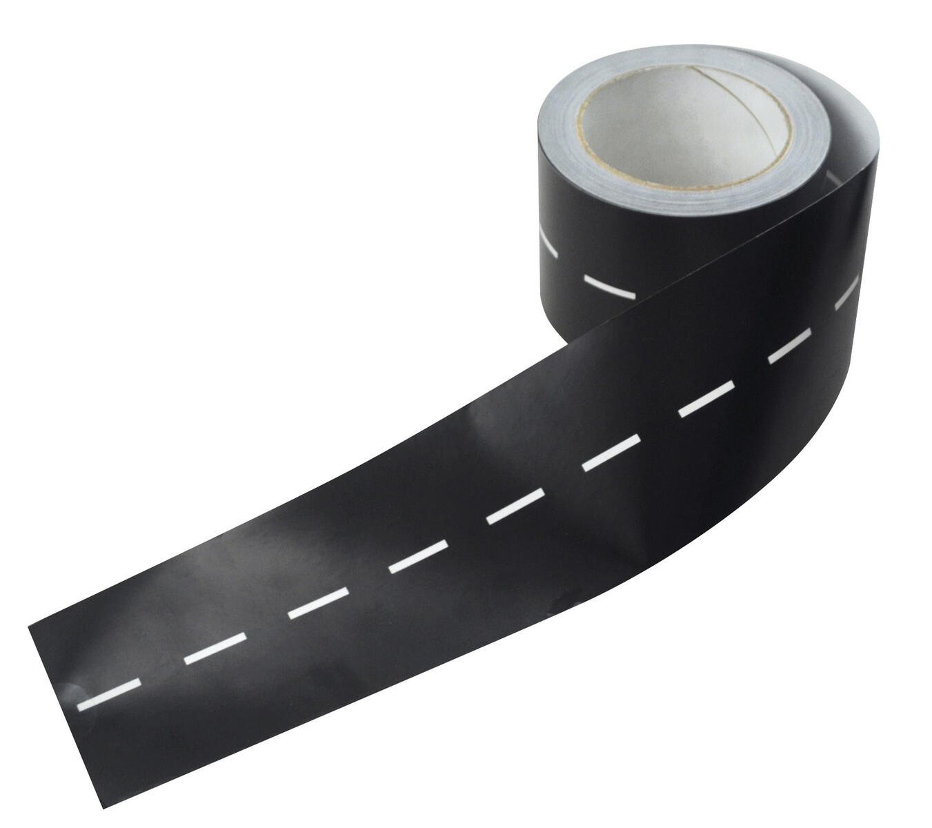 10 m/fp. En rulle med självhäftande vägbana som kan klippas i önskad längd. Placeras ej på känsliga ytor då den kan vara svår att ta bort om den suttit för länge. Bredd 8 cm. Av papper.